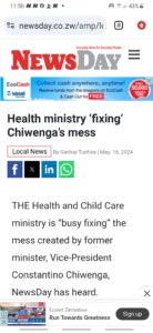 Last week, a local publication reported that the Health ministry was battling to fix the “mess” caused by Chiwenga when, from August 2020, he doubled as the minister responsible for the portfolio.