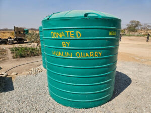 The company bought five of the requested 10 tanks to enhance water availability and donated groceries to some orphans.