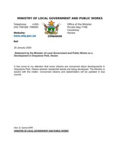 Harare—The Environmental Management Agency (EMA) rapidly intervened to halt a potentially devastating housing development on a crucial wetland in Greystone Park in Borrowdale, Harare.